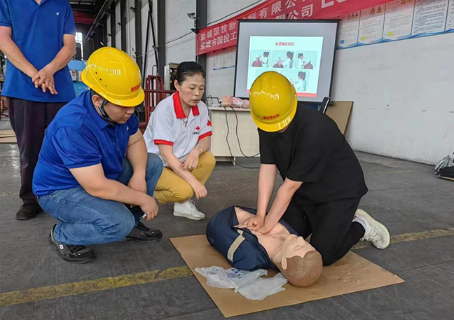 演練前,國(guó)投新材料公司“安全生產(chǎn)月”活動(dòng)領(lǐng)導(dǎo)小組召開(kāi)專題會(huì)議部署演練事宜,要求責(zé)任部門認(rèn)真落實(shí)任務(wù),精心設(shè)計(jì)演練方案,細(xì)化腳本、有序組織、確保質(zhì)量。演練邀請(qǐng)了市紅十字會(huì)講師到場(chǎng)指導(dǎo),圍繞工業(yè)生產(chǎn)中最容易發(fā)生的“觸電”和“機(jī)械傷害”事故展開(kāi),分別進(jìn)行了應(yīng)急救護(hù)知識(shí)培訓(xùn)、事故現(xiàn)場(chǎng)處置和救護(hù)技能實(shí)操練習(xí)?,F(xiàn)場(chǎng)人員密切配合,演練步驟環(huán)環(huán)相扣,達(dá)到了預(yù)期效果。