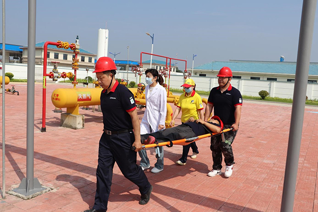 演練共分四大項(xiàng)內(nèi)容,包括模擬天然氣泄漏導(dǎo)致操作人員中毒的急救和護(hù)理;模擬天然氣匯管區(qū)管道法蘭泄漏引發(fā)火災(zāi)的應(yīng)急處理;模擬加油站汽柴油泄漏導(dǎo)致火災(zāi)的應(yīng)急處理;開(kāi)展全員應(yīng)急逃生疏散演練。整個(gè)演練過(guò)程中,大家響應(yīng)快速、配合密切,各個(gè)環(huán)節(jié)銜接有序,險(xiǎn)情排除及時(shí),進(jìn)一步驗(yàn)證了事故處置方案的科學(xué)性、合理性和可行性,達(dá)到了預(yù)期的效果。