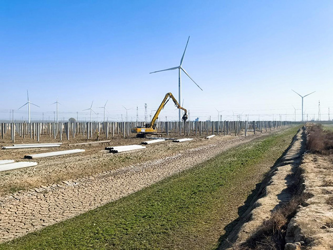 當下項目正有序推進,1#、2#、3#光伏發(fā)電單元的樁基施工已圓滿完成,13#、12#、11#、10#、7#、4#光伏發(fā)電單元的樁基施工,以及組件和支架安裝等后續(xù)工作也在穩(wěn)步推進,現(xiàn)已累計完成9000根管樁施工,預(yù)計將于4月中上旬圓滿完成光伏區(qū)的打樁作業(yè),隨后全面鋪開支架及組件的施工,積極搶抓工作進度,全力保障項目早日實現(xiàn)并網(wǎng)發(fā)電。