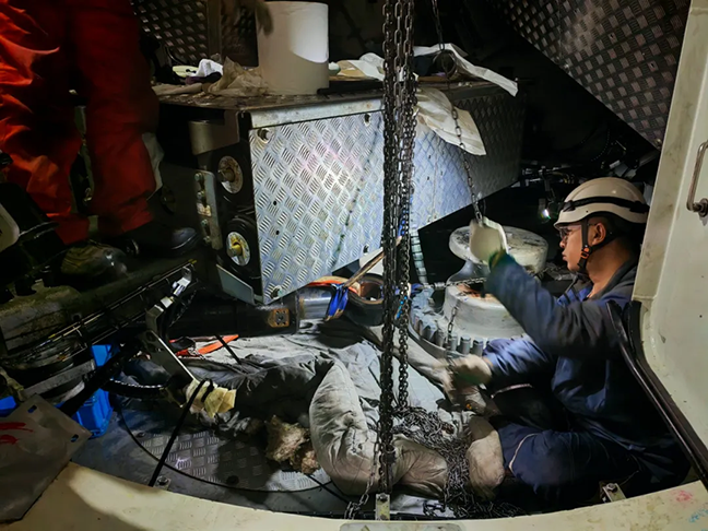 本次搶修工作任務(wù)繁雜,涵蓋油缸及輔助設(shè)備吊運(yùn)、滑軌支架安裝、油缸拆卸更換、系統(tǒng)調(diào)試等多個關(guān)鍵工序,按常規(guī)流程需5天才能完成。面對臺風(fēng)逼近的緊迫壓力,維修團(tuán)隊以“保安全、搶工期”為核心,迅速優(yōu)化施工方案,科學(xué)調(diào)配人力物力,強(qiáng)化各工序銜接協(xié)作,成功將搶修周期大幅壓縮至26小時,在臺風(fēng)來臨前順利完成全部搶修任務(wù)。