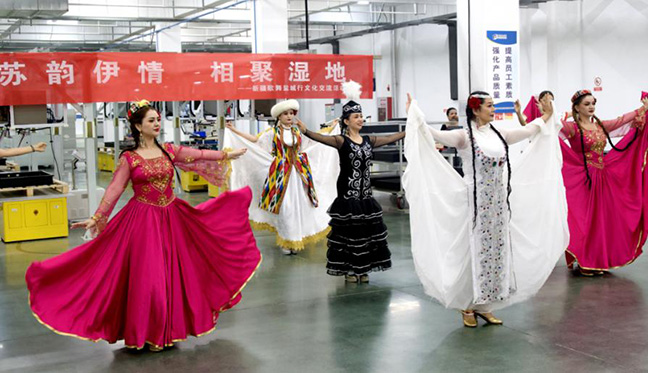 為進(jìn)一步加強(qiáng)集團(tuán)企業(yè)文化建設(shè),履行國有企業(yè)社會(huì)責(zé)任,促進(jìn)民族團(tuán)結(jié)交流,5月13日至14日,鹽城國投集團(tuán)邀請(qǐng)來自新疆伊犁察布查爾縣的文藝表演團(tuán)隊(duì),赴國投中科公司、鹽城天然氣開發(fā)公司、國投新材料公司、東南創(chuàng)投公司、鹽城萬豪酒店等單位開展演出活動(dòng),為一線職工帶來多場(chǎng)具有濃郁民族特色的文化體驗(yàn)。