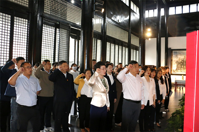 本次活動(dòng)以“踐行‘三個(gè)務(wù)必’ 庚續(xù)紅色血脈”為主題?;顒?dòng)中,4個(gè)基層黨組織的黨員干部職工首先來(lái)到新四軍重建軍部舊址(泰山廟),從老照片、文獻(xiàn)、歷史實(shí)物中深入了解當(dāng)年新四軍在艱苦環(huán)境中浴血奮戰(zhàn)、英勇抗敵的光輝歷程,感受革命先烈們忠貞不渝的愛國(guó)主義情懷。在紀(jì)念館大廳,全體黨員面向黨旗重溫入黨誓詞,表達(dá)不忘初心、牢記使命的堅(jiān)定信念。